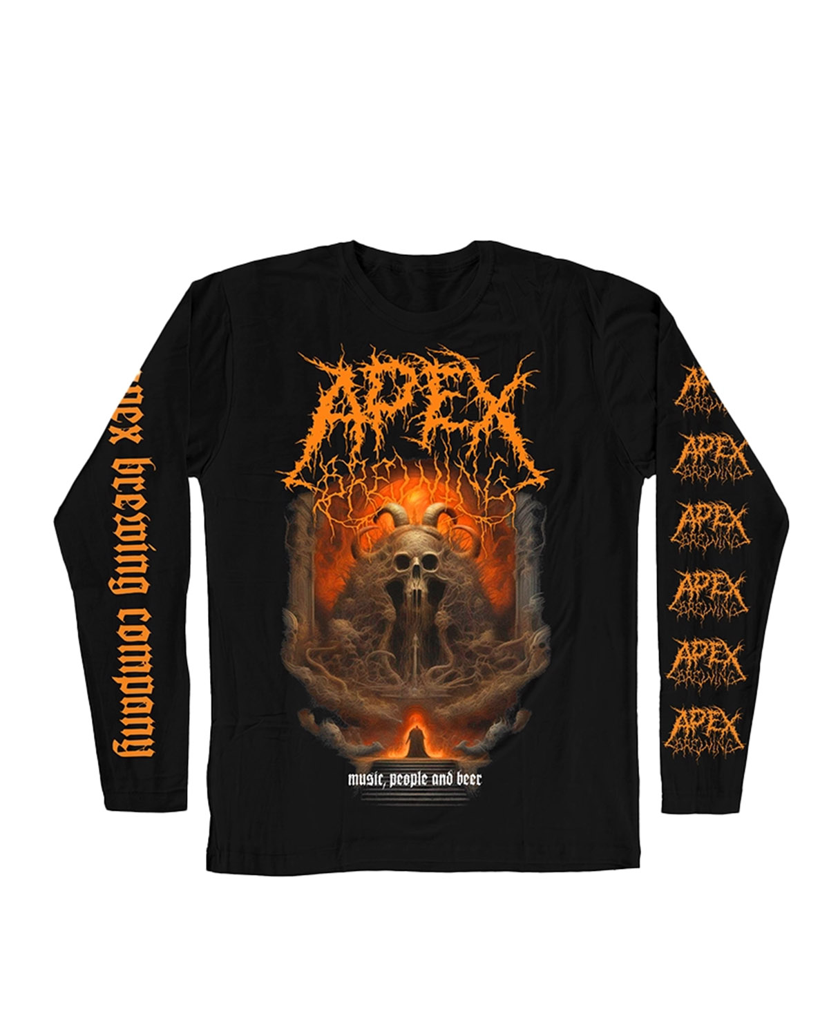 Svart långärmad t-shirt med stort tryckt på bröstet.