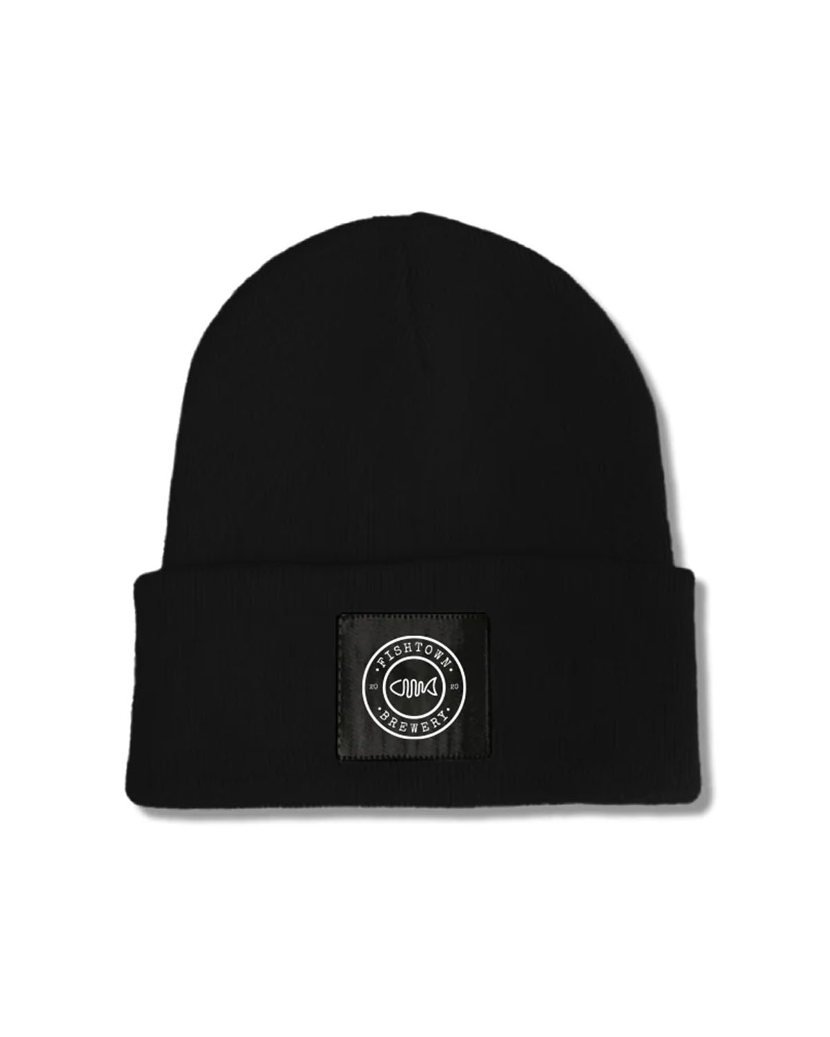Snygg Beanie från Fishtown Brewery med vävd etikett på fronten.