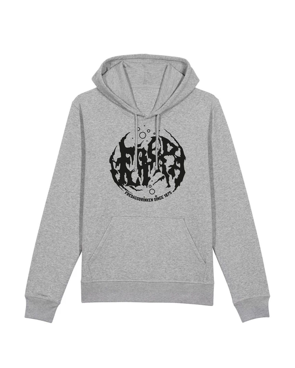 Hoodie från Fred Ultra. Gråmelerad med svart logo tryckt över bröstet.  En snygg hoodie för alla tillfällen.
