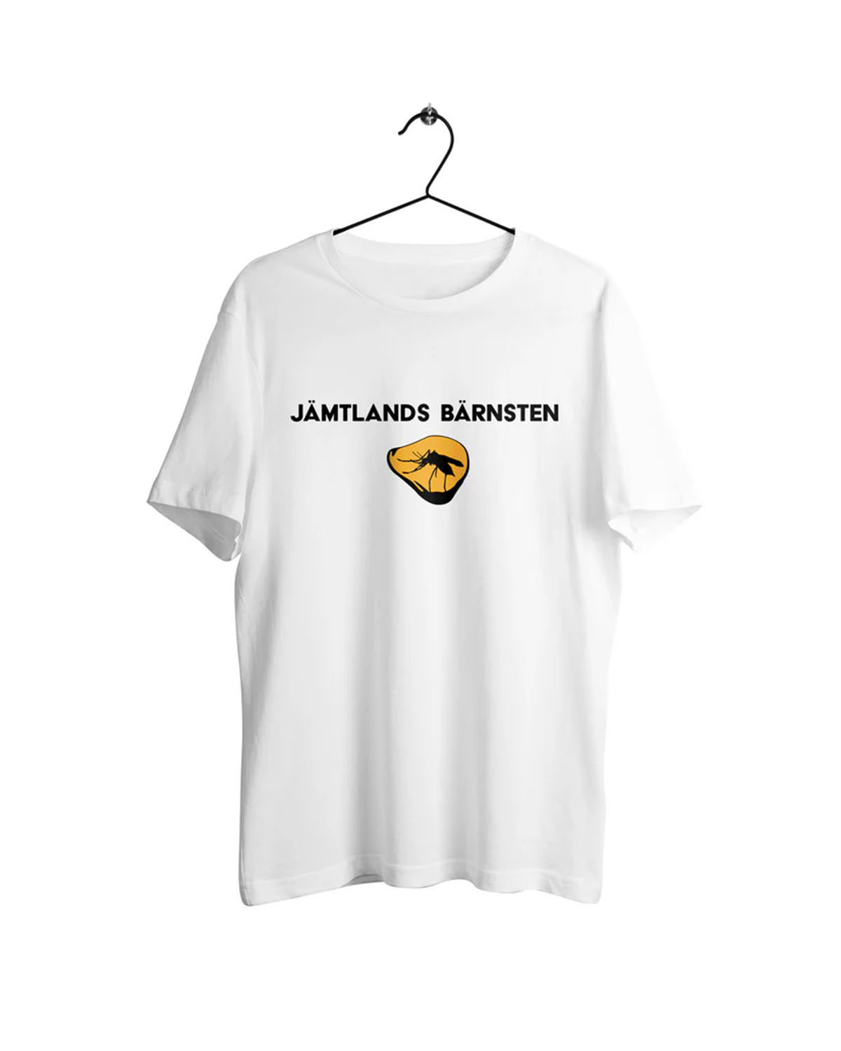 Vit t-shirt från Jämtlands Bryggeri med Jämtlands Bärnsten tryckt på bröstet