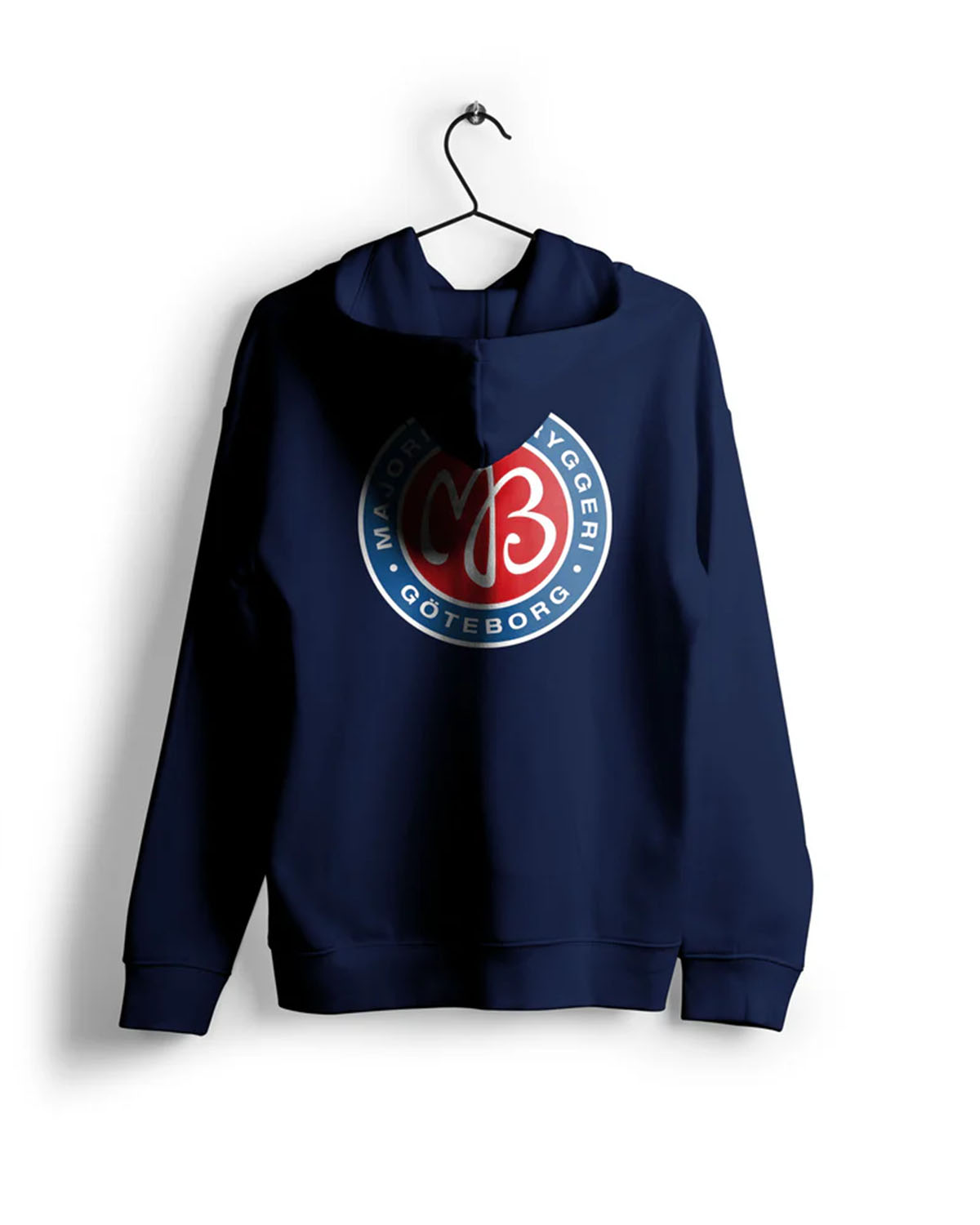Snygg hoodie från Majornas bryggeri med vit logga vänster bröst samt fullfärgs logga bak.