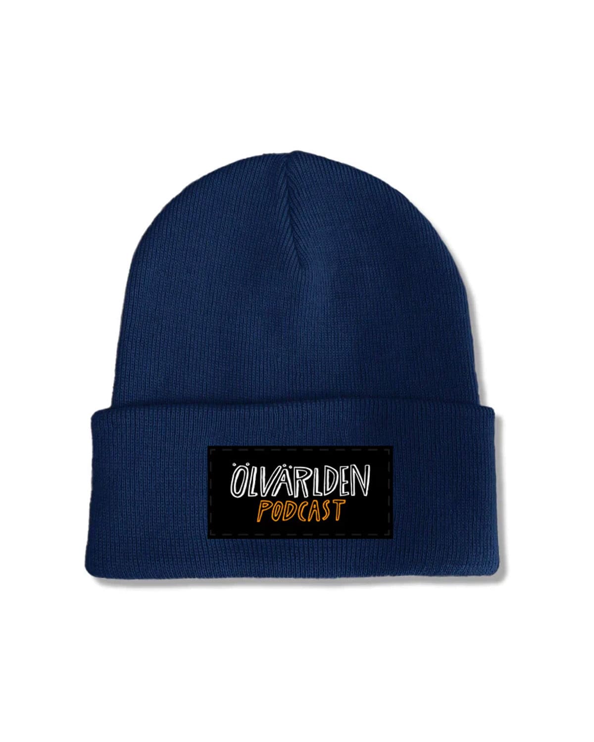 Vinterns hetast mössa! En stickad beanie med vävd etikett på fronten.